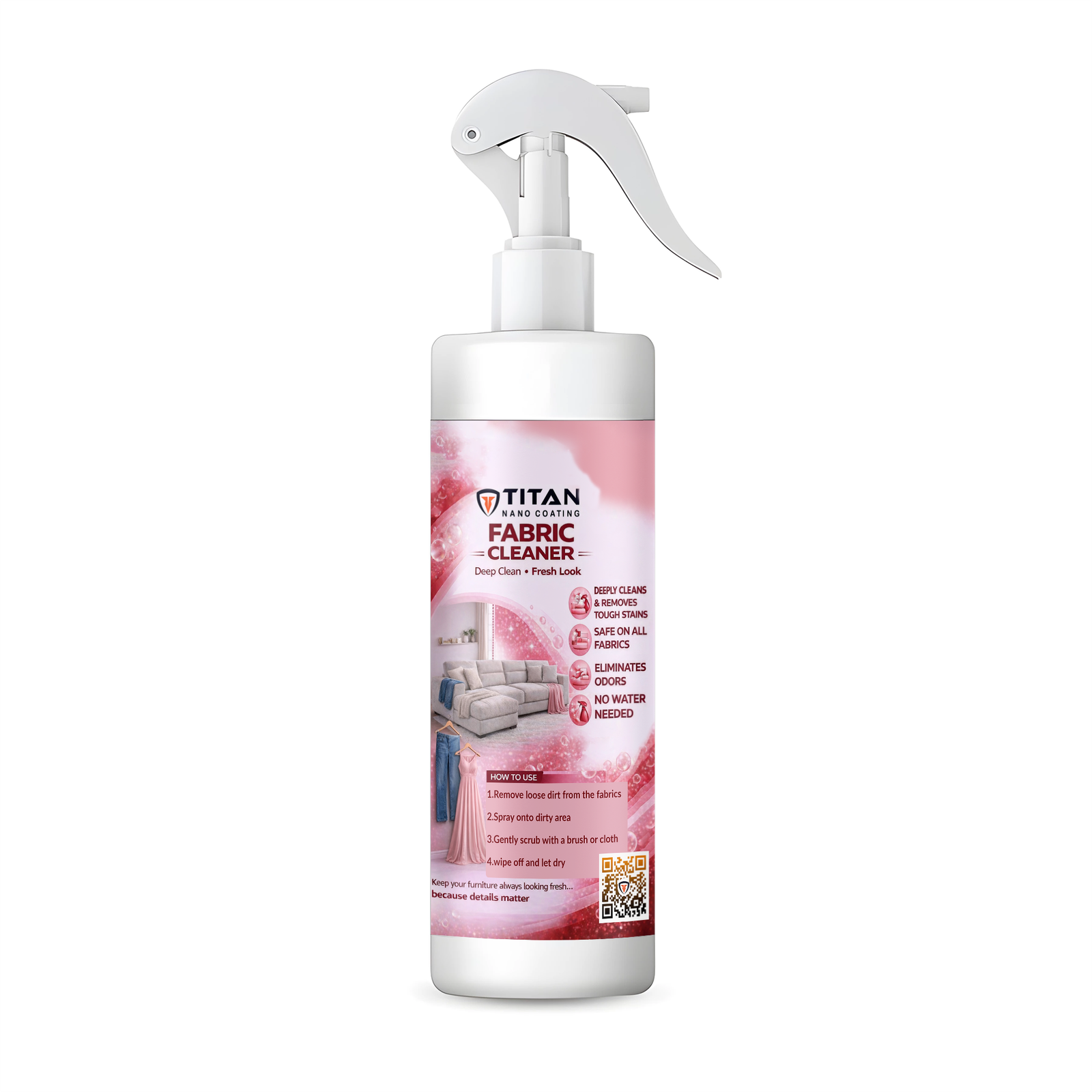 Enjoy clean furniture and a long-lasting fragrant scent, with complete protection for fabric fibers thanks to Titan’s advanced cleaning technology.